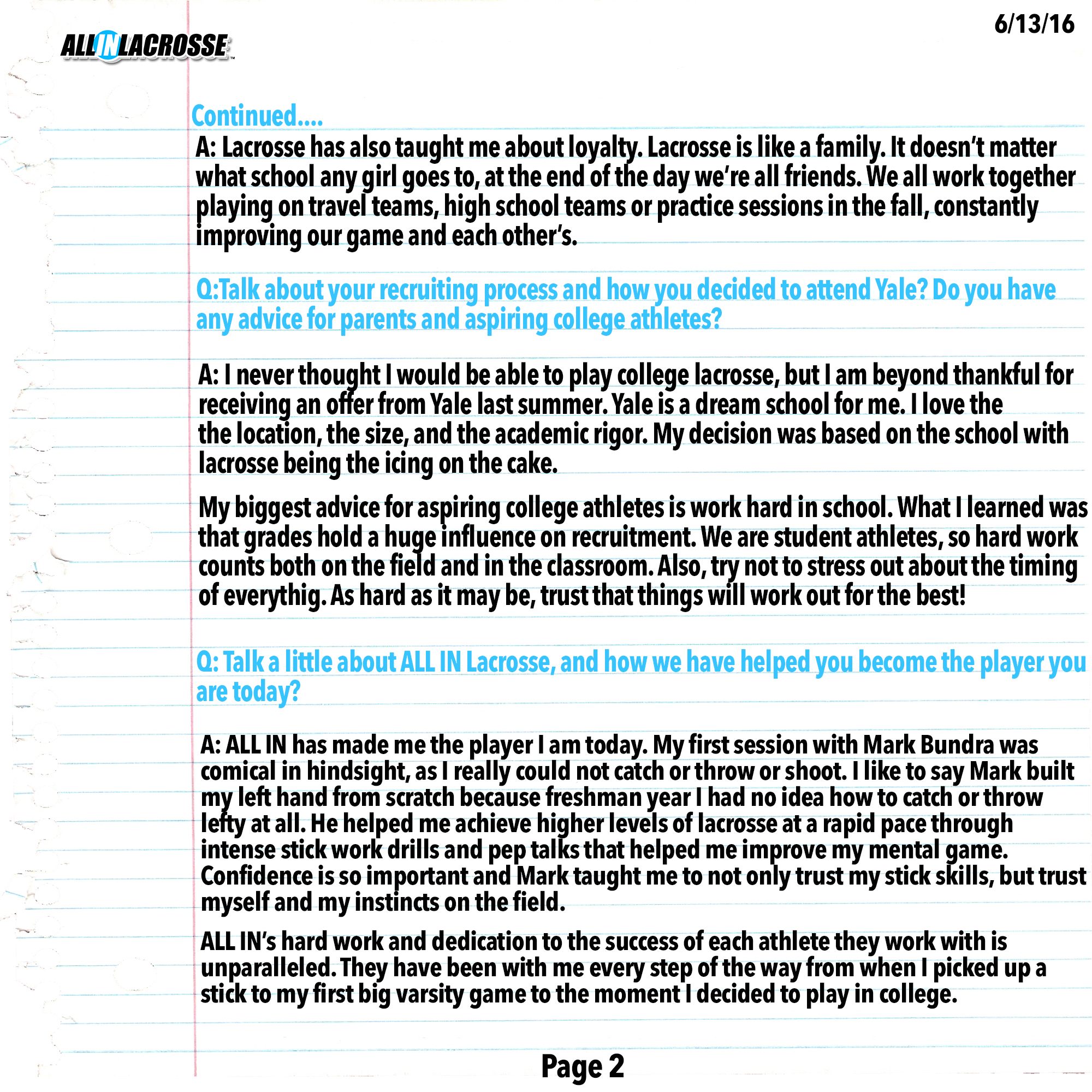 ALL IN Lacrosse is pleased to share two amazing lacrosse player interviews. Find out about Hannah and Conor’s lacrosse experiences and see their amazing journey through the sport of lacrosse and more.